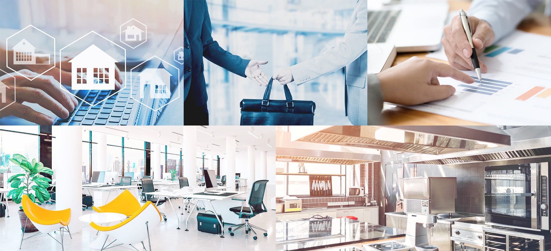 事務所、飲食店、各種小売店、医療介護施設、美容室等、一般商業施設の厨房機器、家具什器設備、照明設備、空調設備全般の設計から施工、設備販売までトータルに提案しております。